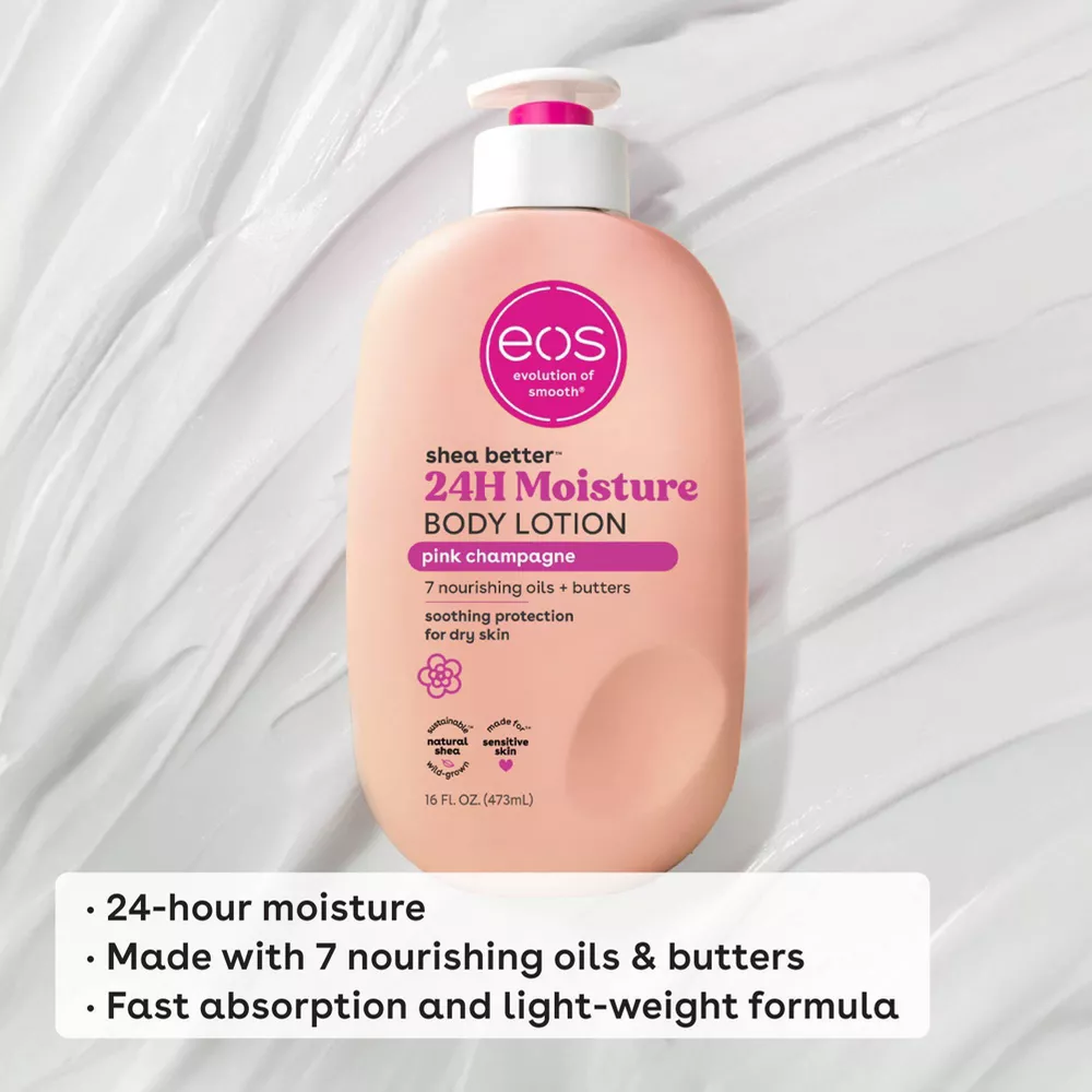 Laissez-vous séduire par la Pink Champagne Body Lotion de eos, une lotion hydratante à la texture légère et au parfum envoûtant. Conçue pour offrir 24 heures d’hydratation non-stop, elle protège et nourrit votre peau sans effet gras ni collant, tout en enveloppant vos sens d’un sillage fruité et pétillant.