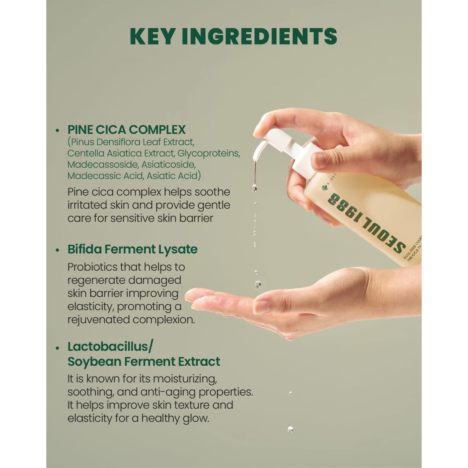 Enrichie en complexe pin & cica et en probiotiques, elle calme les irritations, renforce la barrière cutanée et laisse votre peau propre, apaisée et nourrie. 💧