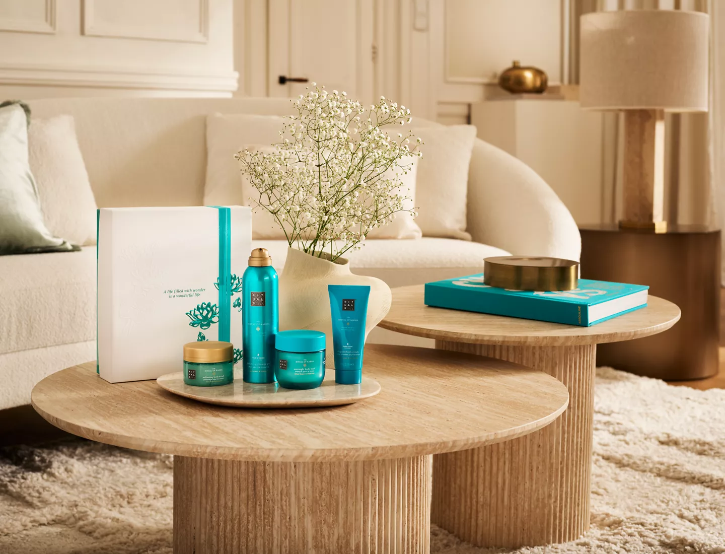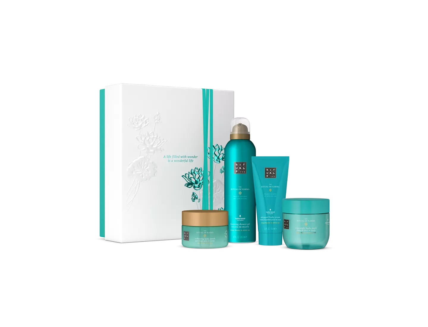 Prolongez la sensation de fraîcheur avec le coffret Karma, aux notes florales de lotus et de thé blanc.